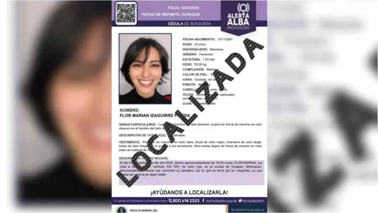 Leer más¡Buenas noticias! La tiktoker Marian Izaguirre, desaparecida en Uruapan, fue localizada con vida en Morelia tras 5 días. Está fuera…