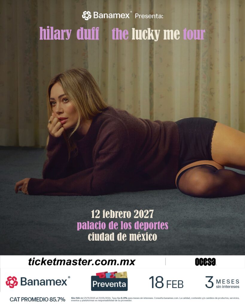 Hilary Duff volverá a la Ciudad de México el 12 de febrero de 2027 en el Palacio de los Deportes con su gira ‘The Lucky Me Tour’.